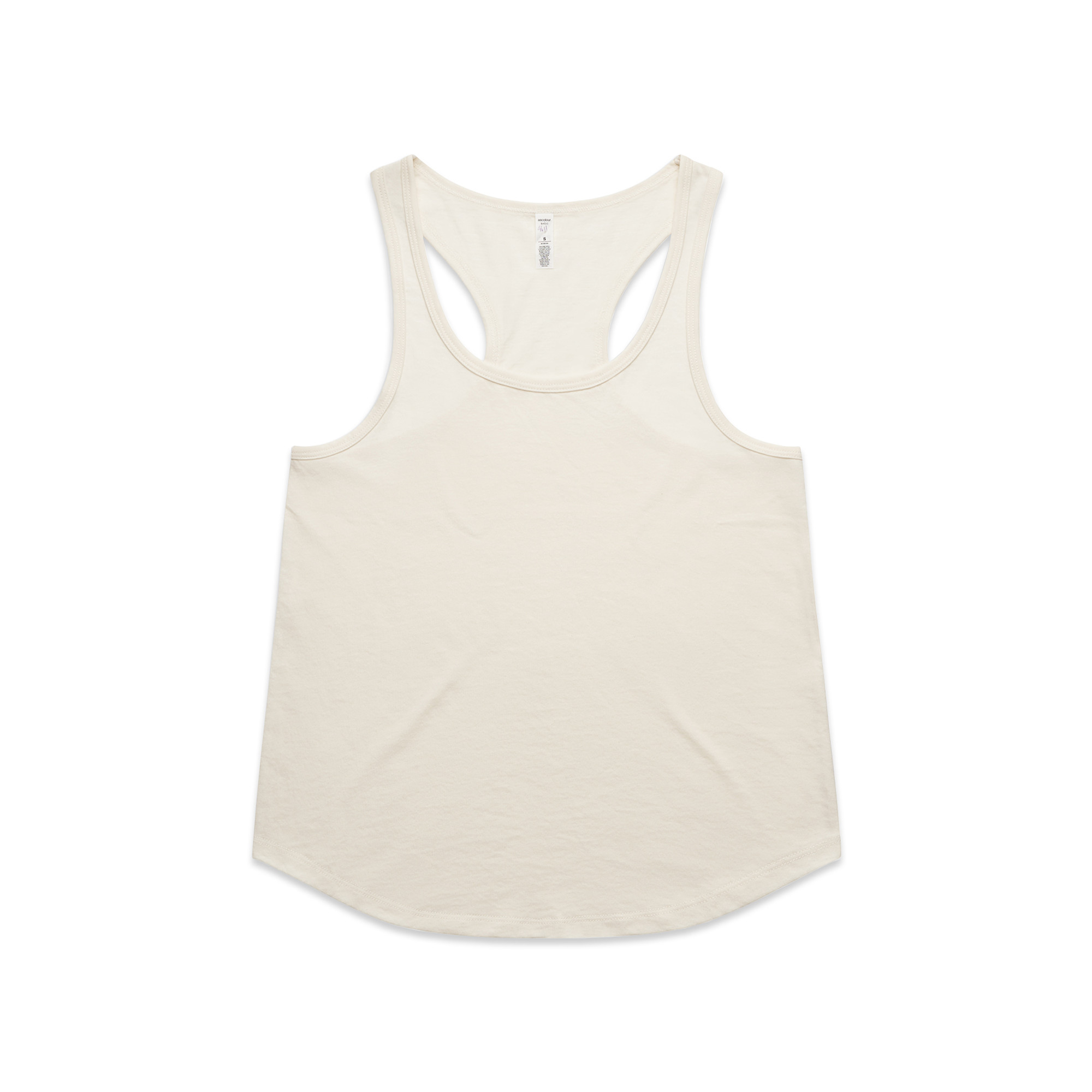 Self-fabric binding on neck and armholes, side seamed, double needle hems, pre-shrunk to minimise shrinkage, suitable for low to medium impact activities.